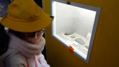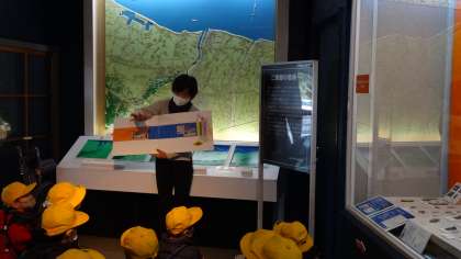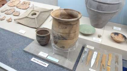 校外学習で民俗民芸村に行きました。考古資料館では、縄文時代等の出土品や古墳に関する展示を見て学習しました。豊田地域から出土した人の顔が描かれている壺もあり、歴史を身近に感じることができました。