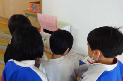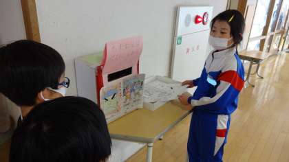 6年生が企画してくれた節分のイベントに参加しようと、塗り絵を取りに行きました。どんな鬼に勝ちたいか考えながら作品を仕上げられるといいですね。