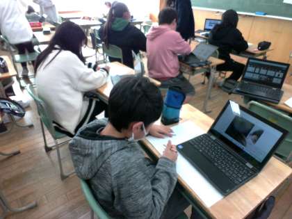 図画工作科では、写真を見ながら、版画の下絵を描きました。今年度は「◯◯している自分」を描きます。