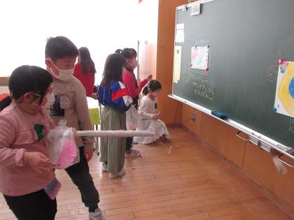 的を大きくしたり、じょうぶでよく飛ぶおもちゃに改良したことなど、これまで1年生のためにがんばった自分たちに自信をもったようでした。