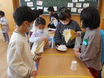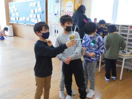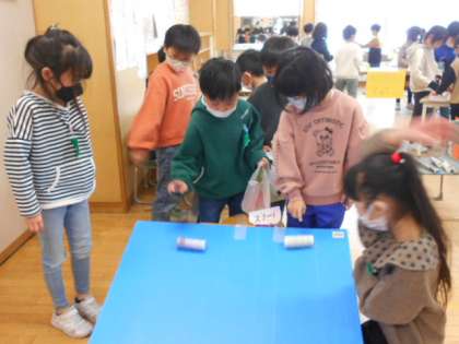 2年生さんに「うごくおもちゃゆうえんち」に招待してもらい、行ってきました!2年生さんが作ったおもちゃは、どれもおもしろく、楽しい時間はあっという間に過ぎていきました。「楽しかった〜」「景品ももらったよ!」「またやりたい!」と大満足な1年生でした。