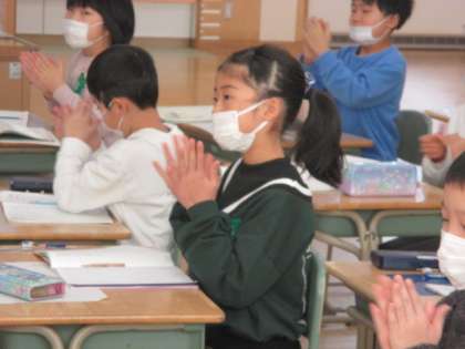話す人は、声の大きさや、話す早さ等を考えて、紹介したい遊びを分かりやすく伝えました。聞いている人は、うなずきながら、どんな遊びか考えながら聞きました。