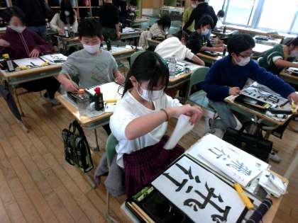 書写の学習では、用紙にあった文字の大きさに気をつけながら「飛行」を書きました。