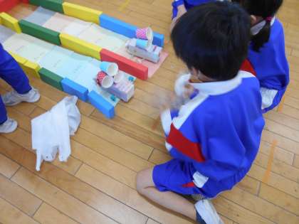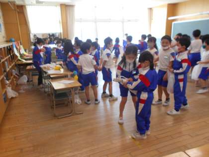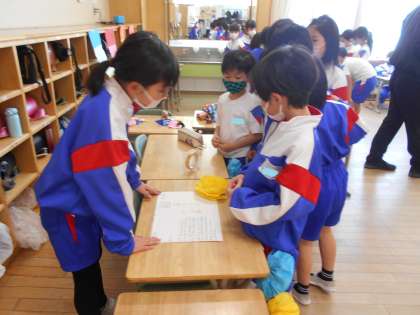 2年生さんが「ぜひ、自分たちで作ったおもちゃで遊んでみてください」と招待してくださいました。2年生さんの説明をしっかりと聞いて楽しい時間を過ごしました。それぞれのコーナーで2年生手作りの景品をいただき大満足でした。2年生さんへの憧れをより一層強め、自分たちももうすぐ2年生になることへの期待を大きくした1年生でした。
