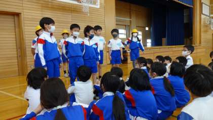 スポーツ係が企画したおにごっこ集会を行いました。一生懸命追いかけるおにの子供たちに、捕まえられないように頑張って逃げる子供たちでした。氷おにやバナナおに等、いろいろなおにごっこをして楽しみました。振り返りでは、進行の仕方やルールに課題があることに気付きました。どのようにしたらよいか考え、さらにみんなで楽しめるように工夫していく姿を期待しています。