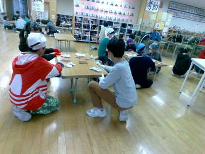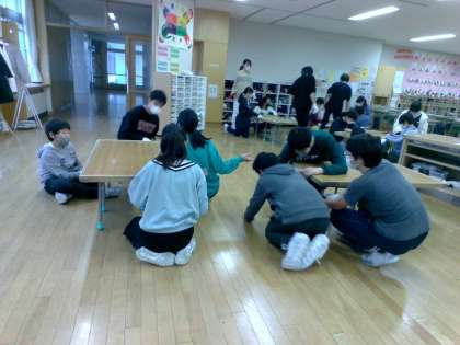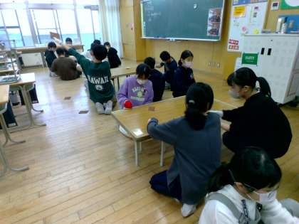 全校の給食台天板のささくれや汚れをとり、ニスを塗りました。卒業生として感謝の気持ちをもちながら、協力する様子が見られました。