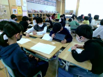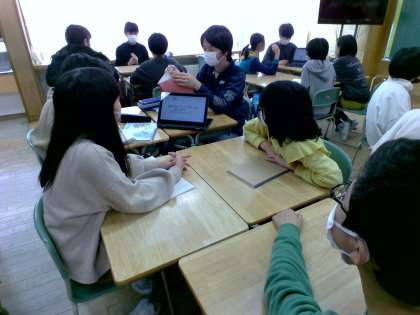 スライドの資料を効果的に用いて、班ごとにスピーチを行いました。
