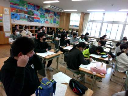 学習のたしかめに向けて対策プリントを解きました。復習しながら、丸付けを進めていました。