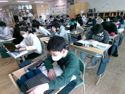 社会科では、世界の課題を解決するために取り組みについて調べています。