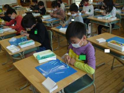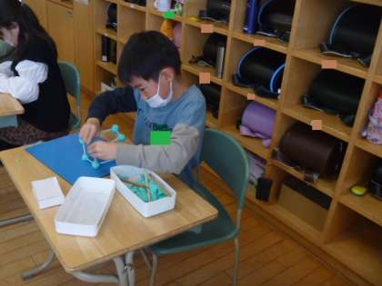 子供たちは友達と「同じ長さのストローって何本いるのかな」「粘土玉って何個必要かな」など話し合いながら作っていました。