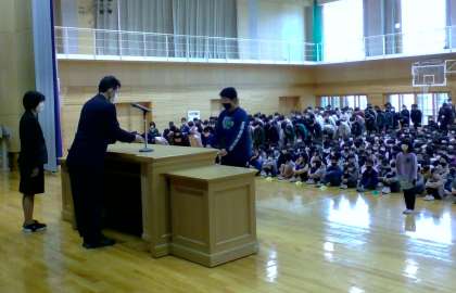 各学年代表1名が、1年間の成長の証である修了証を校長先生から頂きました。