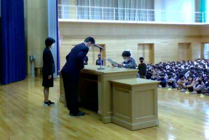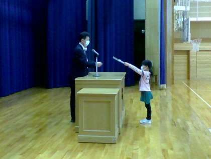 各学年代表1名が、1年間の成長の証である修了証を校長先生から頂きました。