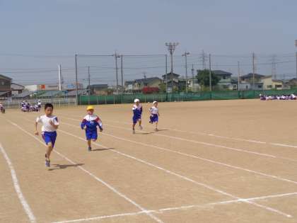 今日は、天気も良く、子供たちは一生懸命に50m走に取り組みました。1年生の時よりも50m走のタイムが速くなっているかが気になっている子供たちの姿が多くありました。