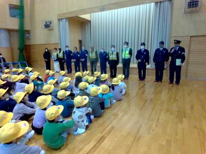 本日、1年生の交通安全教室を行っています。豊田交番、富山中央交通安全協会、豊田校区指導員の方をお招きし、道路の安全な渡り方やいかのおすし等について教えていただいています。