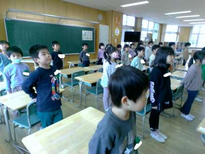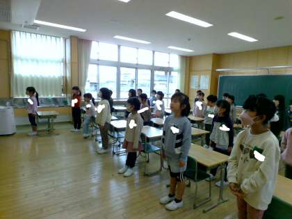 朝の会では、校歌の練習をしています。だんだんと歌詞も覚えてきた子どもたちは、堂々と大きな口を開けて元気よく歌っています。