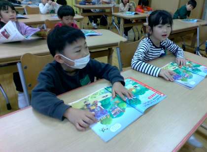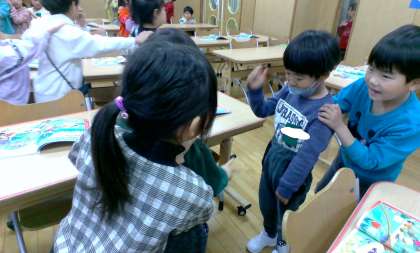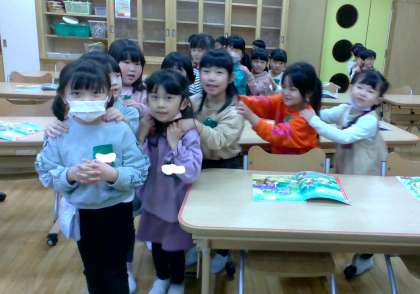 音楽科の学習の様子です。音楽に合わせてじゃんけん列車をしたり、友達と声を合わせて歌ったりしました。友達となかよく音楽に親しむ姿が見られました。