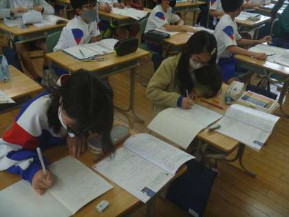 また、算数では整数と小数の仕組みについて学習しています。小数点の位置に気を付けながら計算を行っています。
