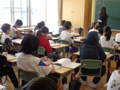 対称な図形の特徴を見つける活動にも粘り強く取り組んでいました。