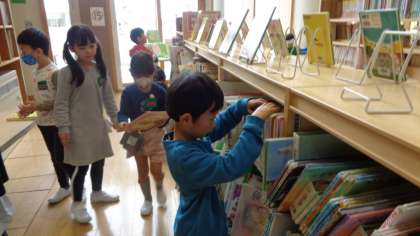 今日は、図書室の使い方について、図書館司書の先生に教えていただきました。また、読み聞かせをしていただいてから、自分の好きな本を借りました。