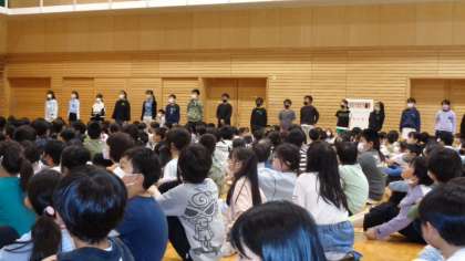 全校児童がアリーナに集まり、児童会発足式を行いました。