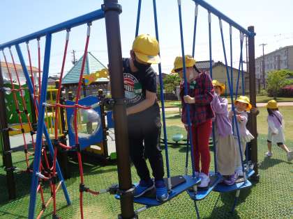 2年生は、町探検で城川原公園に行きました。遊具で遊んだり、地域の方と話したり、豊田のまちの素敵なところを探していました。