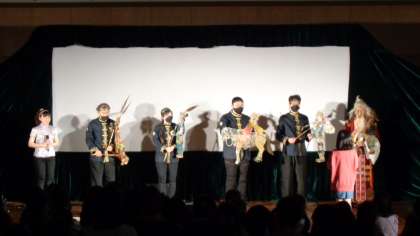 今日は、芸術鑑賞会をしました。「鶴と亀」という物語や「西遊記」の作品を影絵を使った影絵劇として、公演していただきました。