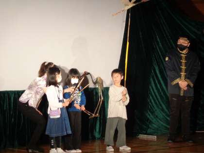 子供たちからは、「本当に生きているように見えた。」「影なのにカラフルでびっくりした。」などの声が聞かれ、とても楽しく芸術に触れることができました。