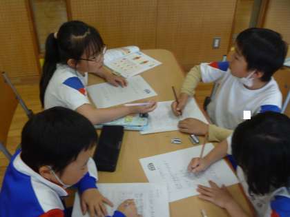子供たちは、「2拍子を感じながら、橋の上で楽しく踊っている様子を歌で表したいな」「『みんなでおどろう』のところは、グループのみんなで明るい声で歌いたいな」等、歌い方の工夫を考えていました。