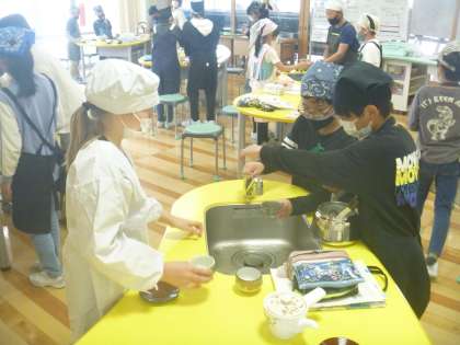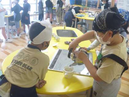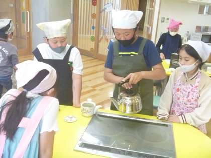 家庭科の学習では、みんなで協力をしながら準備をし、おいしくお茶を飲みました。