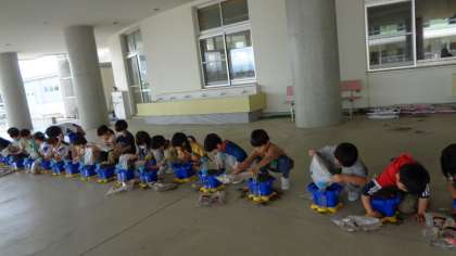 今日の生活科は、それぞれの植木鉢に、あさがおのたねをまきました。