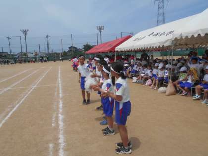 子供たち一人一人が、徒競走、台風の目、色別リレーと練習の成果を出し切り、やり遂げることができました。