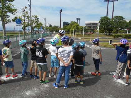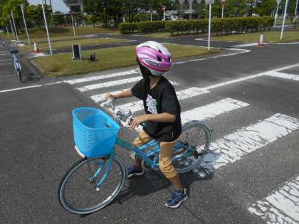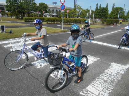 交通公園での、自転車教室の様子です。