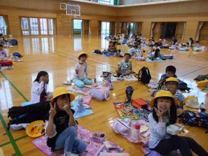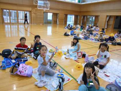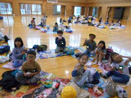 アリーナでお弁当を食べました。みんなの笑顔がたくさん見られた時間になりました。アリーナでお弁当を食べるという特別な時間を楽しみました。