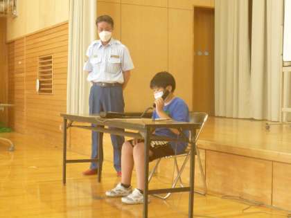 富山北消防署の方の前で、「BFCの誓い」を宣誓しました。BFC活動に真剣に取り組もうとする気持ちを高めていました。