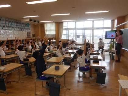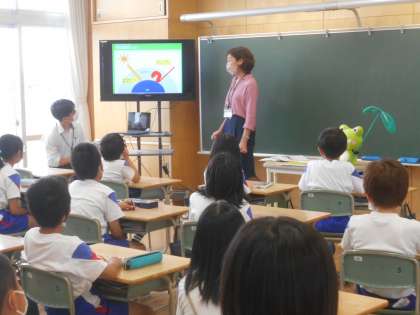 先週に引き続き、富山市役所の環境政策課から来てくださった先生から、地球温暖化についてたくさん教えていただきました。身近な食べ物も地球温暖化で被害を受けていることや、私たちができる取り組みについて教えていただきました。