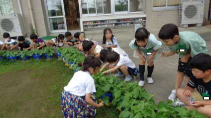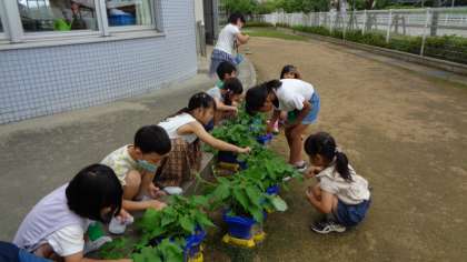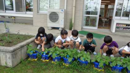 あさがおの葉が大きくなり、枚数も増えてきたので、今日は追肥をしました。
