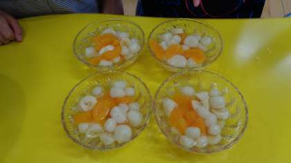 今日は、白玉団子入りのフルーツポンチを作りました。