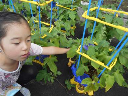 春から一生懸命育ててきたアサガオの花が咲き始めました。「先生青色の花が咲いたよ!」「ぼくは4つも咲いたよ!」など嬉しそうに教えてくれる姿を見て、こちらまで嬉しくなります。