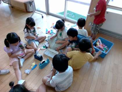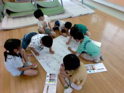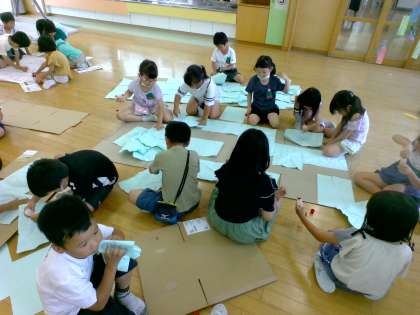 七夕集会の準備をしています。金魚すくいの池を作ったり、プログラムを書いたりしています。明日の集会が楽しみですね。
