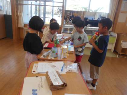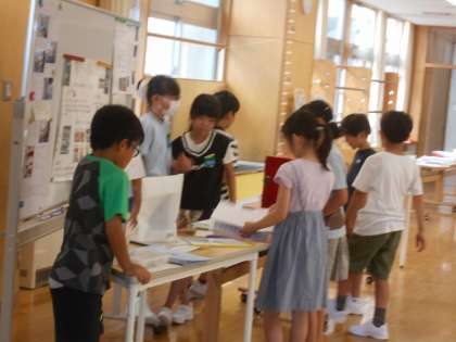 夏休みに取り組んだ自由研究を見合いながら、「これどうやって作ったの」「時間かかったでしょう」「ぼくの自由研究も見て」と、互いの頑張りを認め合う姿があちらこちらで見られました。今週、フレンドリー班の仲間に見せ合う活動があります。1年生から6年生までの作品を見合うことを今から楽しみにしている子供たちです。