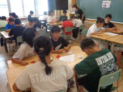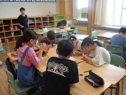 今日は、交通安全マスコット「トマッティ」を6年生で作りました。声を掛け合いながら協力して製作していました。