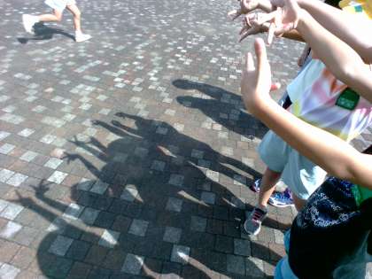 かげはどのようにしてできるのかを友達と一緒にかげつなぎ等をして考えました。