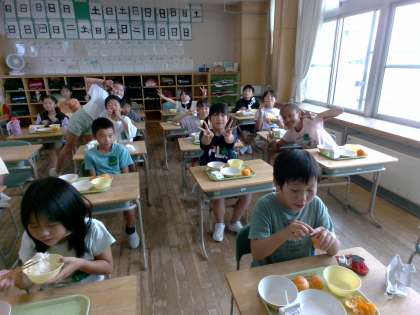 今日の給食は冷凍みかんが出ました。冷たいのでみんな少しづつ食べていました。