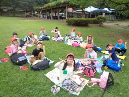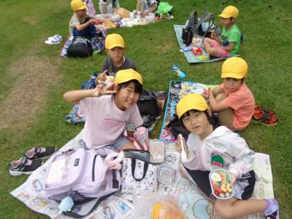お弁当の様子です。おいしそうなお弁当に子供たちは大喜びでした。「このからあげおいしいよ」「ねこのおにぎりかわいいでしょ」と嬉しそうに教えてくれました。お弁当のご準備ありがとうございました。