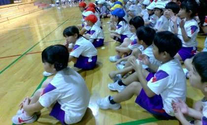 今日は、学び発表会の校内発表がありました。他学年の演技を真剣に見ていました。