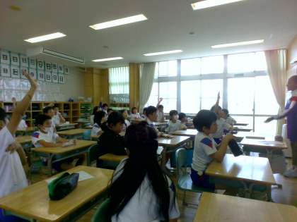 係活動では、お知らせ係が集会を開きました。キャラクターあてクイズを、みんなで楽しみました。