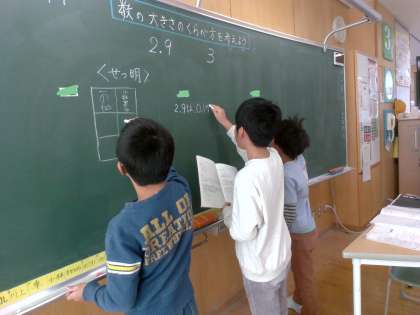 2.9と3はどちらが大きいのか比べ方を説明しました。これまでにならった位や数直線を使って説明をしました。