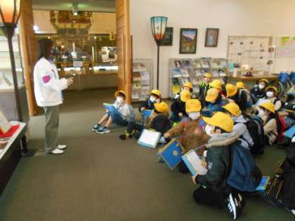 子供たちは、越中八尾曳山展示館に行きました。実際に祭りで使用される曳山を間近で見て、とても驚いた様子でした。