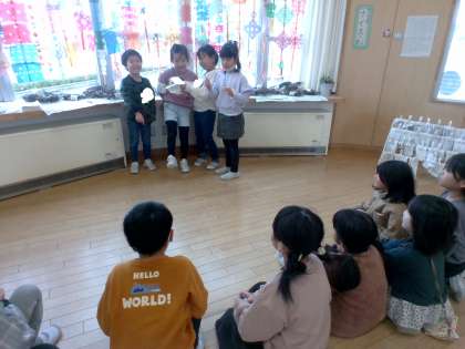 クイズ係がクイズ大会を開きました。参加した子供たちは熱心に答えを考え、答えていました。