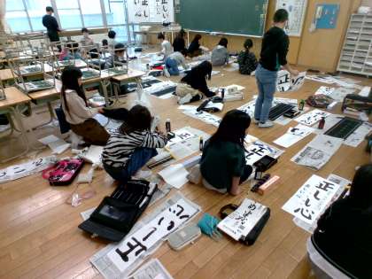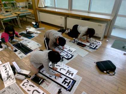 書き初め大会に向けて練習をしました。大きな紙に4文字入れることに苦戦したり、文字のバランスに悩んだりしましたが、楽しみながら初挑戦を終えることができました。